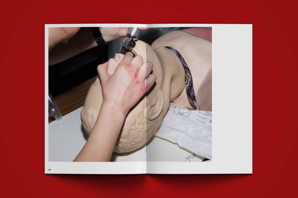 Le premier geste présente une grande partie de la collection de mains d'Amandine Freyd. Celles-ci sont issues d'archives d'encyclopédie ancienne de secourisme et de médecine.