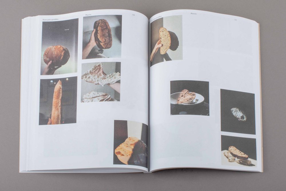 Le livre Notre pain quotidien se présente comme une encyclopédie lacunaire et subjective du pain, qui rend compte de sa présence dans nos vies et de ses évolutions politiques, sociales, économiques, esthétiques. Organisé en planches visuelles, il déploie une mémoire collective autour de cet aliment de base, passant de sa fabrication à ses usages les plus dérivées.